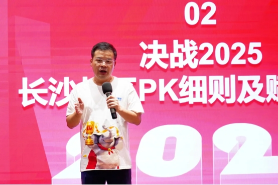 旺德府家居集团省内加盟业务中心总经理唐勇先生登台致辞,欢迎并感谢加盟商。他分析市场趋势,强调PK的核心意义,着重指出业绩PK是激发团队动能的重要抓手,鼓励加盟商在市场竞逐中聚力争先、突破成长,同时动态优化渠道布局,精准部署冲刺目标,为加盟商明晰奋进方向。